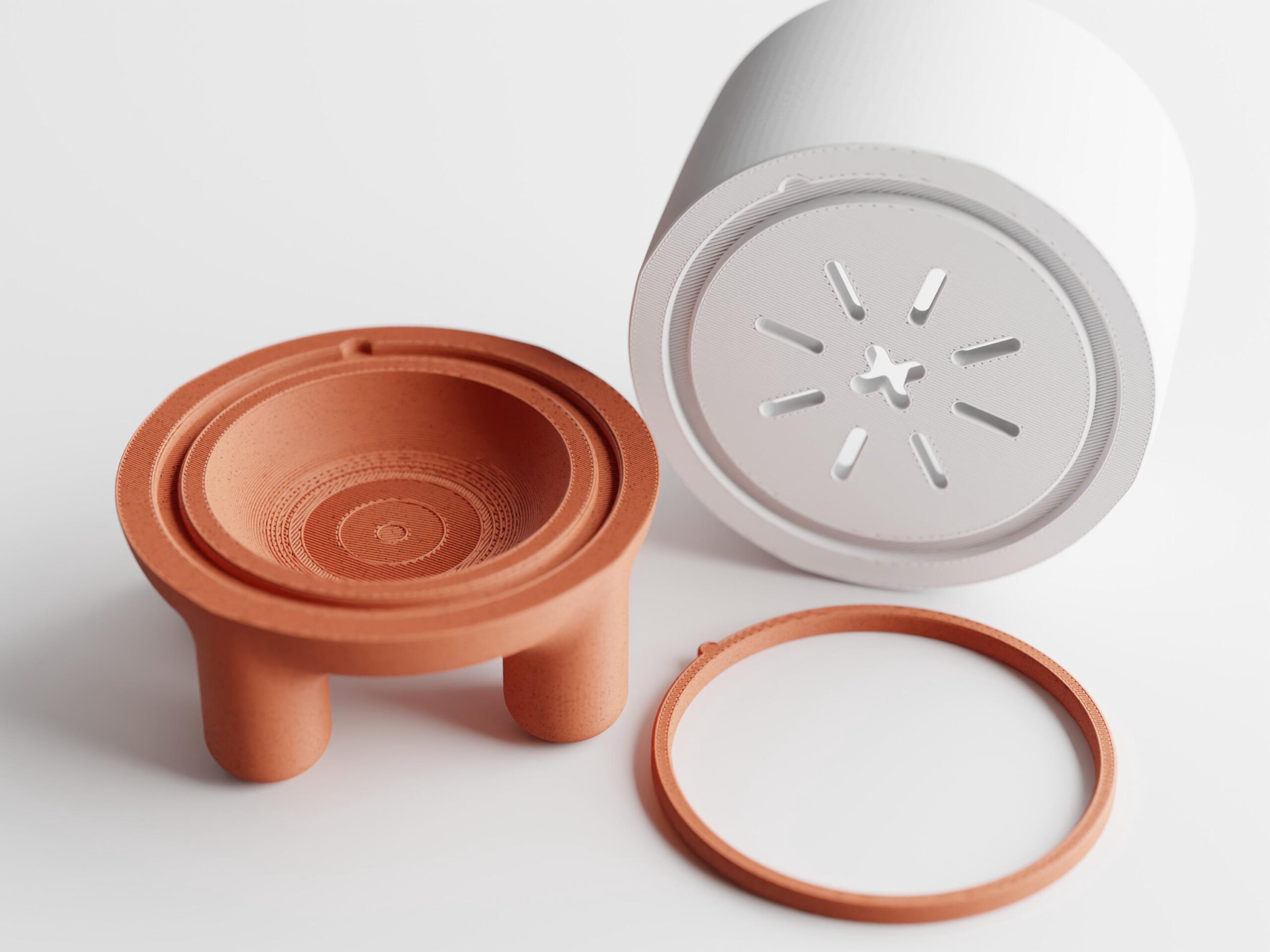 Zweiteilige Konstruktion – Der Topf und die Basis werden separat gedruckt, sodass du Farben nach Lust und Laune kombinieren kannst.