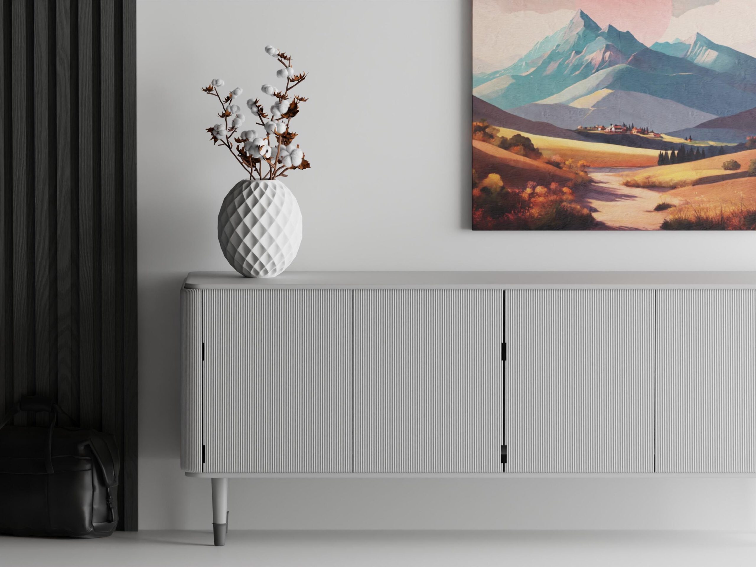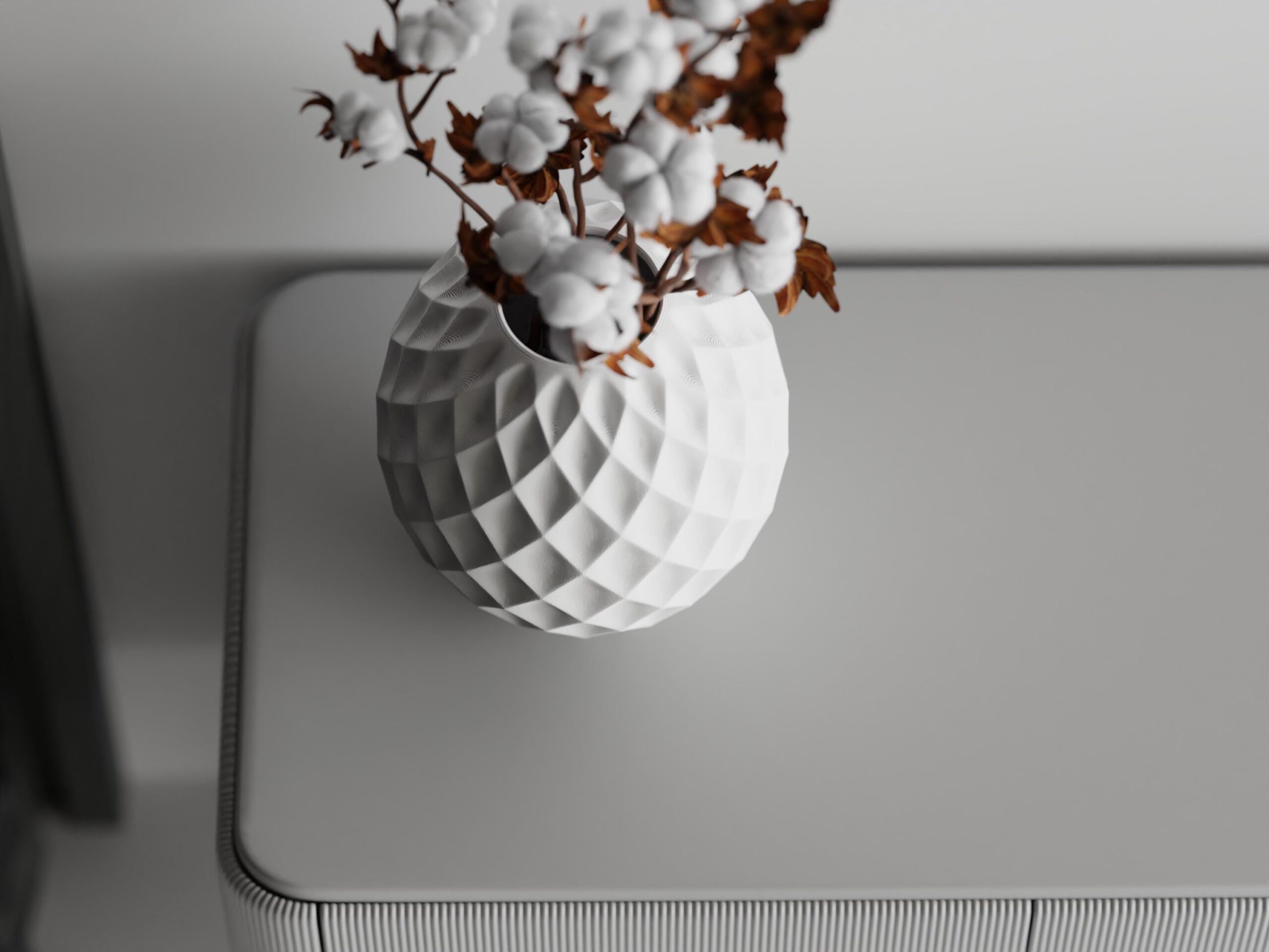 Setze deine Trockenblumen und Dekoration stilvoll in Szene mit dieser eleganten, 3D-gedruckten Vase von HpInvent. Perfekt für moderne Wohnräume und ein echter Hingucker in jeder Einrichtung!